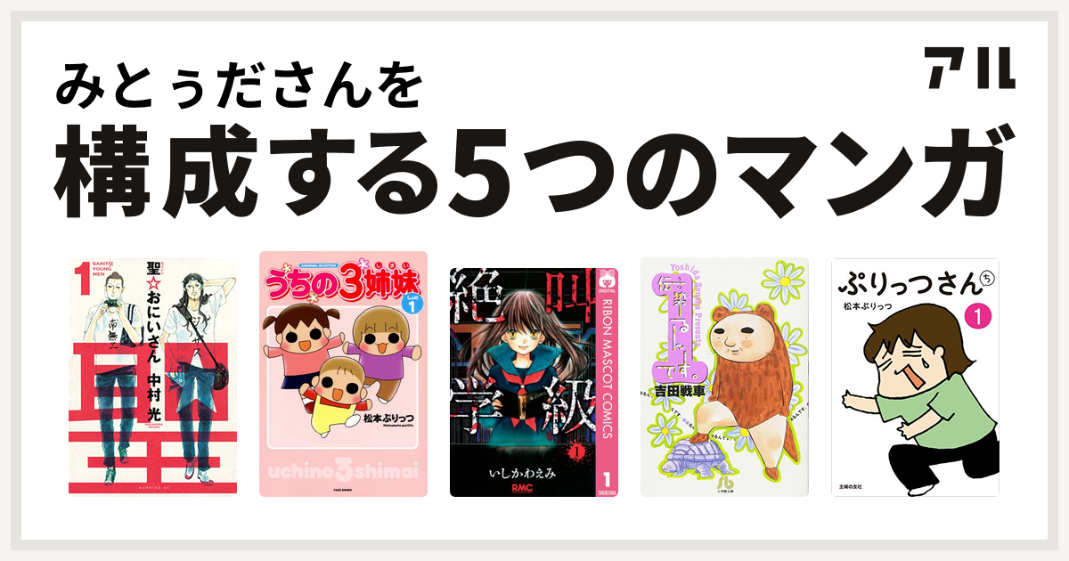 みとぅださんを構成するマンガは聖 おにいさん うちの3姉妹 絶叫学級 伝染るんです ぷりっつさんち 私を構成する5つのマンガ アル